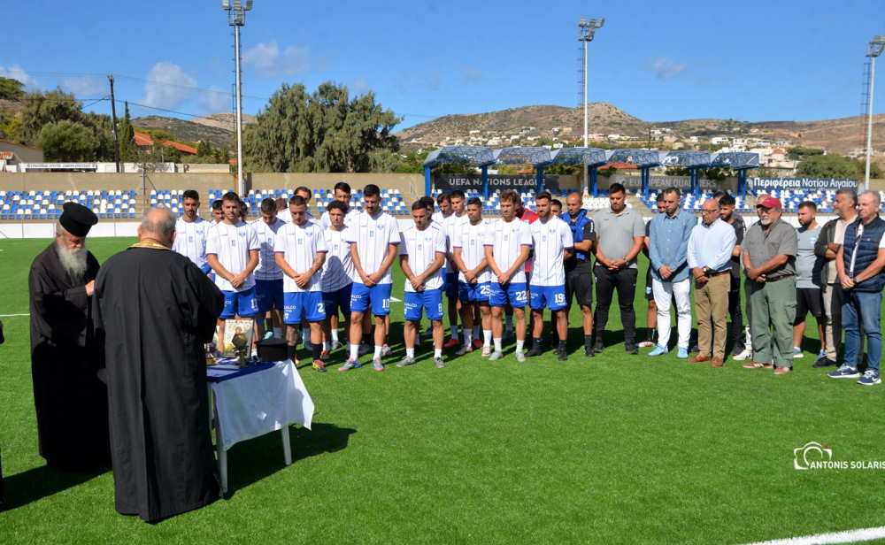 Αγιασμός τελέστηκε σήμερα (4/10) στο γήπεδο της Ελλάς Σύρου, μια ημέρα πριν το παιχνίδι με τον Παναργειακό. Οι Κυκλαδίτες θα δώσουν το πρώτο τους φετινός ματς στη φυσική τους έδρα, που πλέον μεταμορφώθηκε μετά τις βελτιωτικές εργασίες.