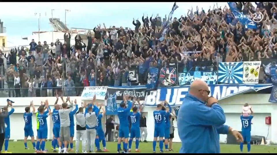 Οι πανηγυρισμοί των παικτών της Νίκης Βόλου με τους οπαδούς τους μετά το 4/4.