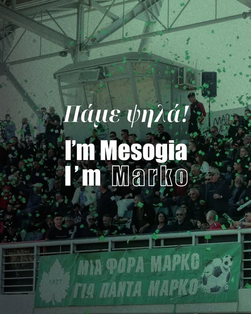 Καλούμε όλο τον φίλαθλο κόσμο της Μαρκό να δώσει δυναμικό «παρών» και να σταθεί στο πλευρό των ποδοσφαιριστών μας, που αγωνίζονται με ψυχή και πάθος, τιμώντας τη φανέλα και εκπροσωπώντας επάξια την ομάδα σε κάθε αναμέτρηση.